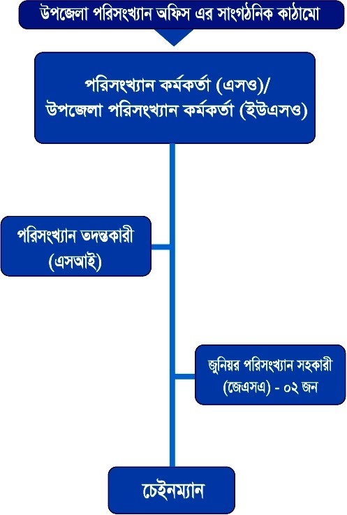 Upazila Statistics Officer. (1 person) Statistics Investigator. (1 person) Junior Statistics Assistant. (2 people) Chainman. (1 person)